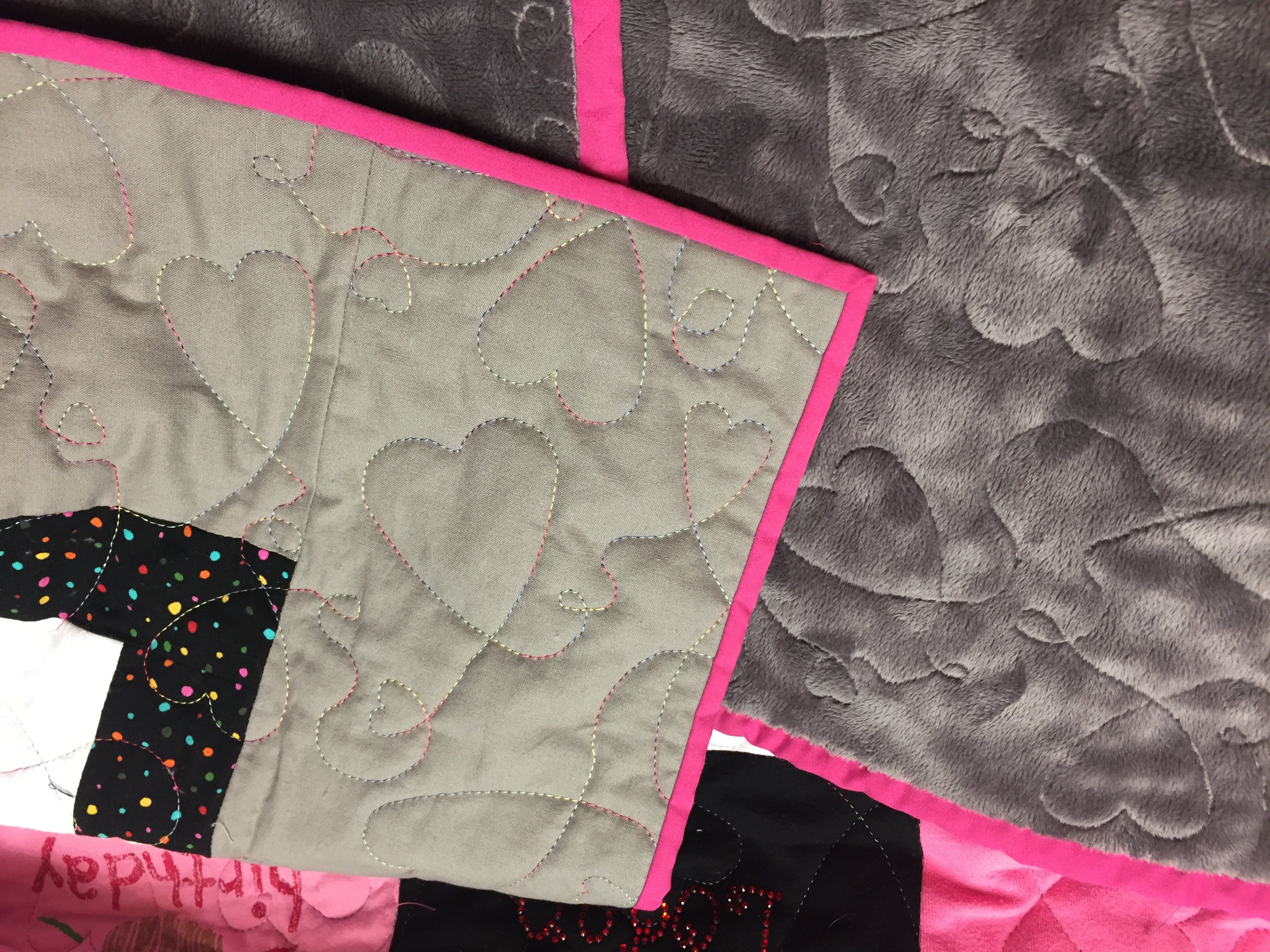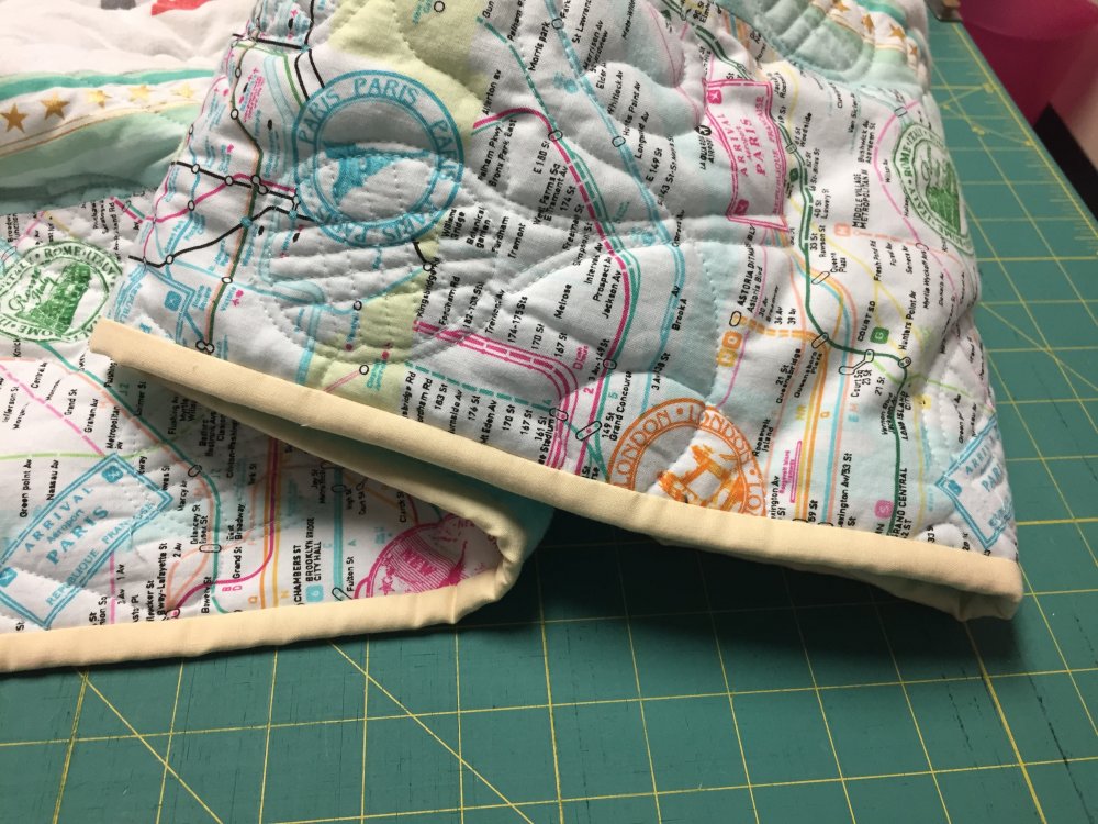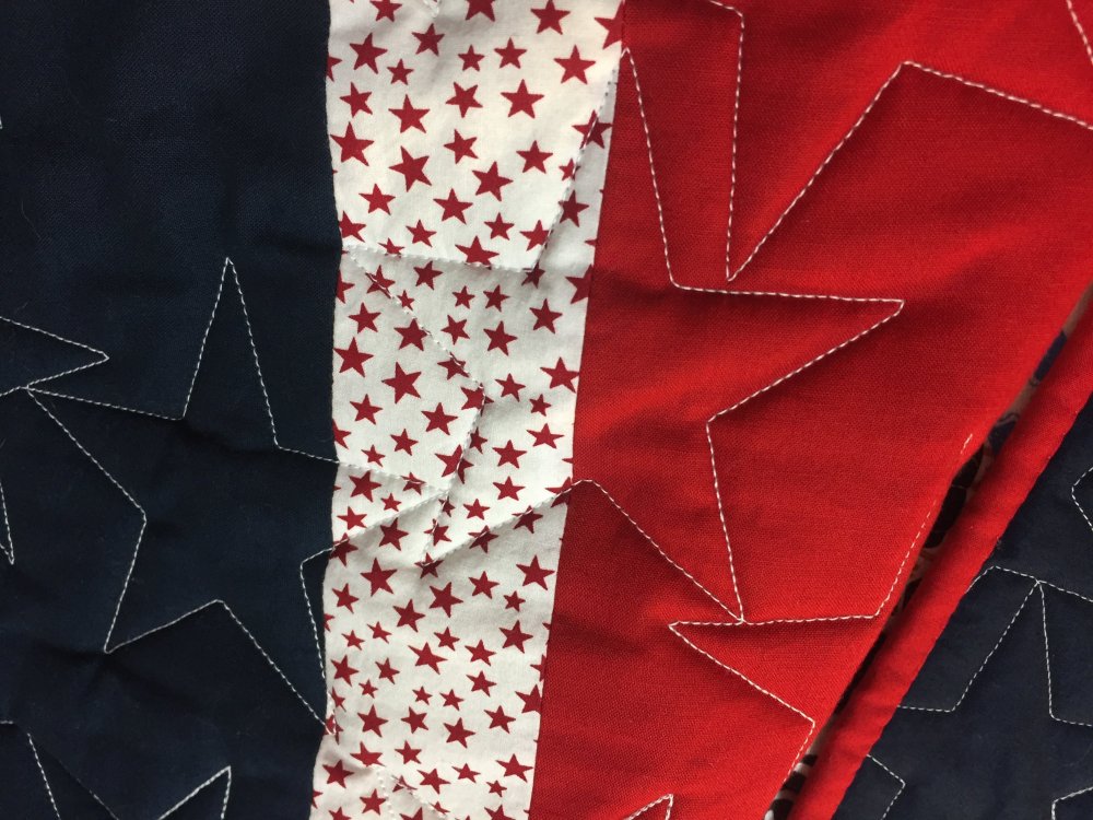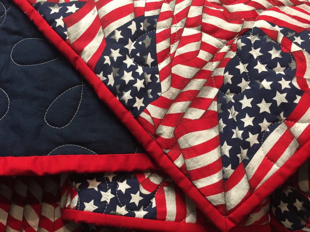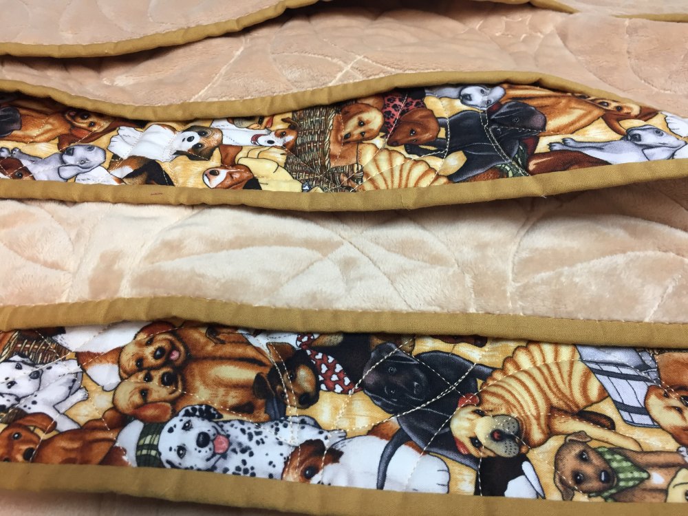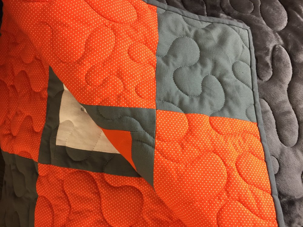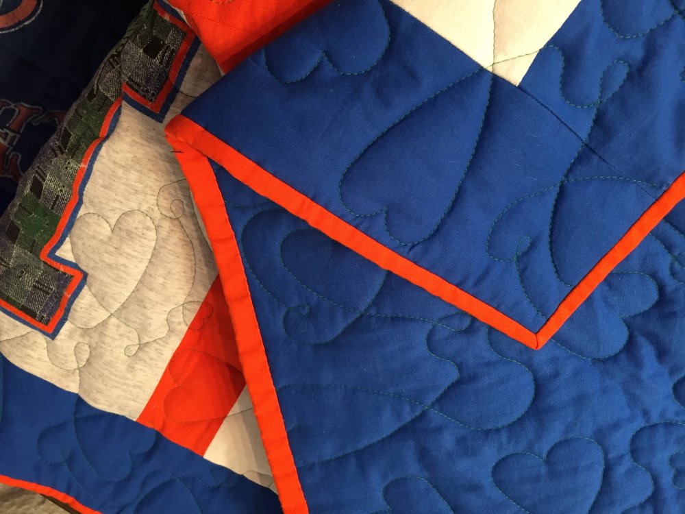 The binding finishes the quilt by neatly concealing the raw edges of all of the layers. We use 100% cotton fabrics. Once made the binding is machine sewn to the front edge of your quilt and then hand sewn to the back. Hand sewing provides a professional finish as the stitches do not show through to the top of the quilt. Here are some examples of our work.
