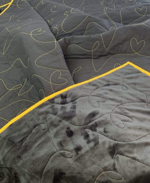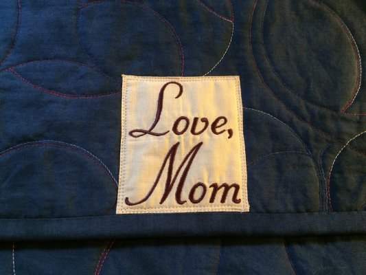 Life can certainly change in an instant. Devon was a high school athlete that enjoyed lacrosse and football. He was on a family ski trip in 2020, had an accident and unfortunately suffered a traumatic brain injury ending his athletic career and leaving him unable to walk independently. Mom wanted to create a special holiday gift from all of the sports shirts and jerseys Devon had earned. To personalize it she liked the quilting design of his 2 main sports, lacrosse and football that you can see in the pictures. Quilting makes it a quilt!